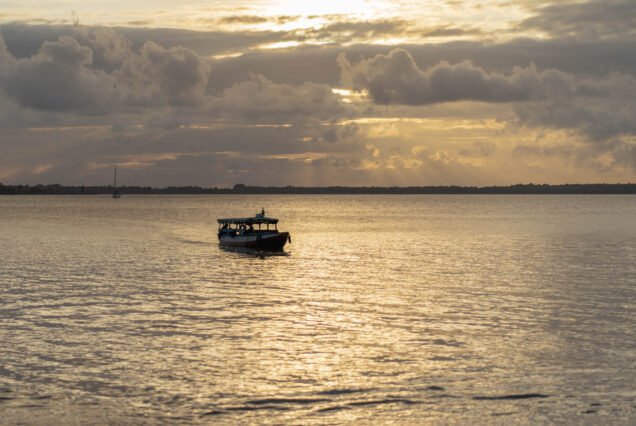 As the evening approaches, we return to the boat and enjoy the sunset while sailing back along the Suriname River.